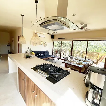 Relax Tulum Family Friendly Apartment In The In The Jungle - Pools & Cenotes omvat zelfvoorzienende faciliteiten, zoals een complete keuken met een koffie/theezetapparaat, een oven en keukengerei. Relax Tulum Family Friendly Apartment In The In The Jungle - Pools & Cenotes ligt op afstand van 56 minuten rijden van de luchthaven Playa del Carmen. De aanwezigheid van yoga-instructie zorgt voor een op fitness gericht verblijf. Dit appartement omvat een dakzwembad en een terras voor het comfort van de gasten.